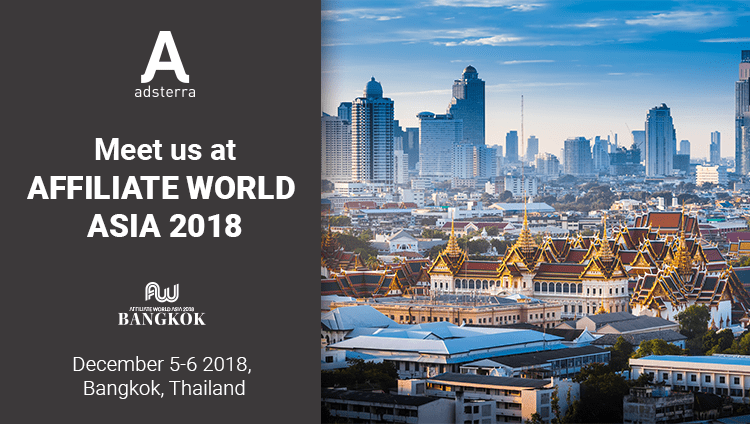 Adsterra team is eager to meet you at Affiliate World Asia, the greatest meeting point for digital marketers and e-commerce businessmen. The event is held In Bangkok, Thailand from 5 till 6 of December.