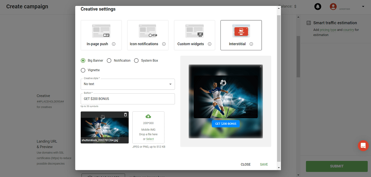If you’re a beginner affiliate who’s not skilled enough in creatives making, you might take a try with Social Bar templates or choose Popunder traffic where you don’t have to design creatives at all.