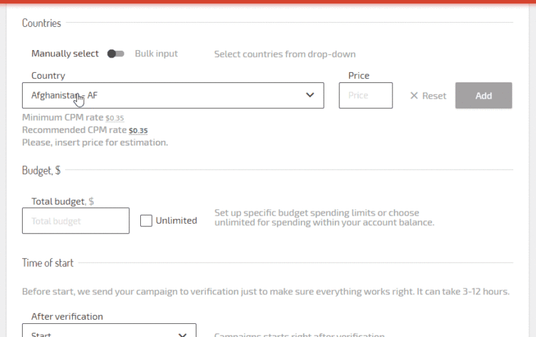 The second one is located in the upper right corner on the “Create Campaign” page, and it shows how much traffic you will get for the whole campaign with all chosen geos.