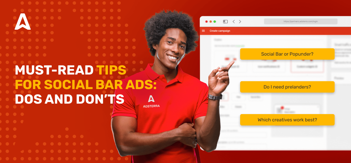 Let’s roll over the most asked questions and, maybe, the most common myths about Social Bar ads. Adsterra conversion analysts are curating thousands of In-Page Push and Social Bar Adsterra campaigns, and here are some questions they keep answering day after day.
