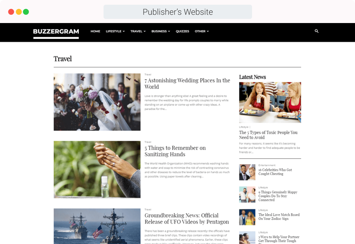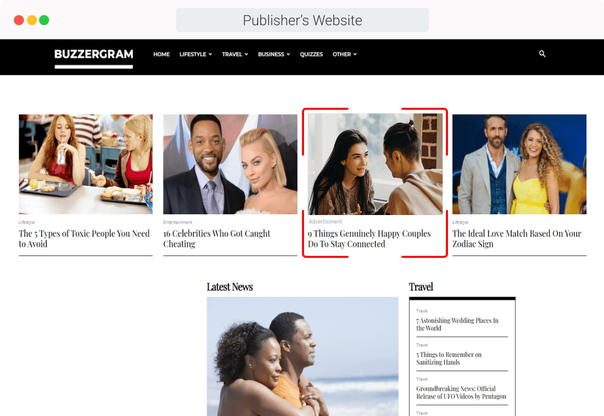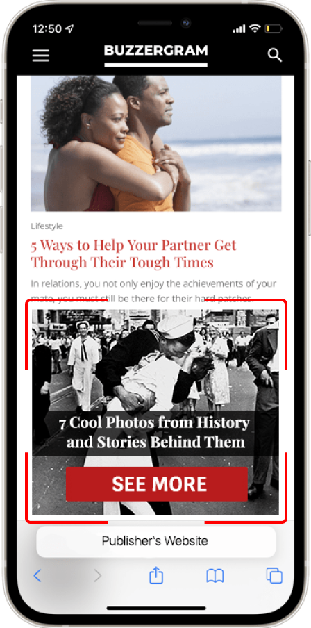 Use the switcher below to explore ad formats for advertisers and publishers. You can check both mobile and desktop ad demos.