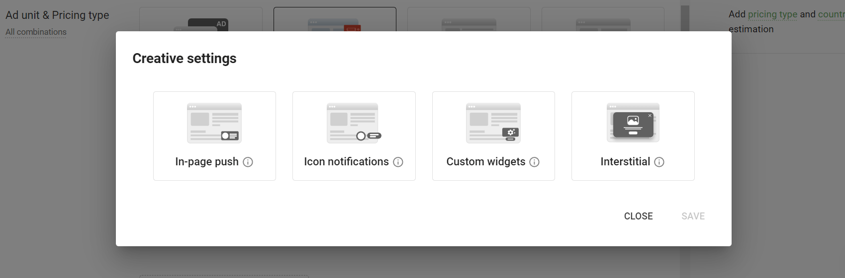 Depending on the ad unit, you will then be able to choose the preferable pricing type.
